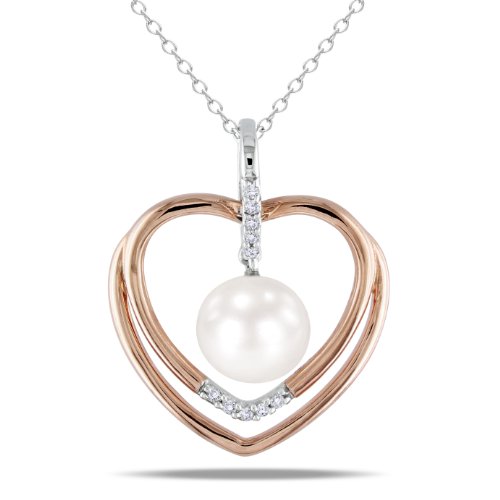 The Price On "White Pink Sterling Silver Freshwater Pearl and Diamond Pendant with Chain, (.05 cttw, G-H Color, I2-I3 Clarity), 18"" Just Dropped - Order Today with Free & Fast Shipping. Hot Savings!